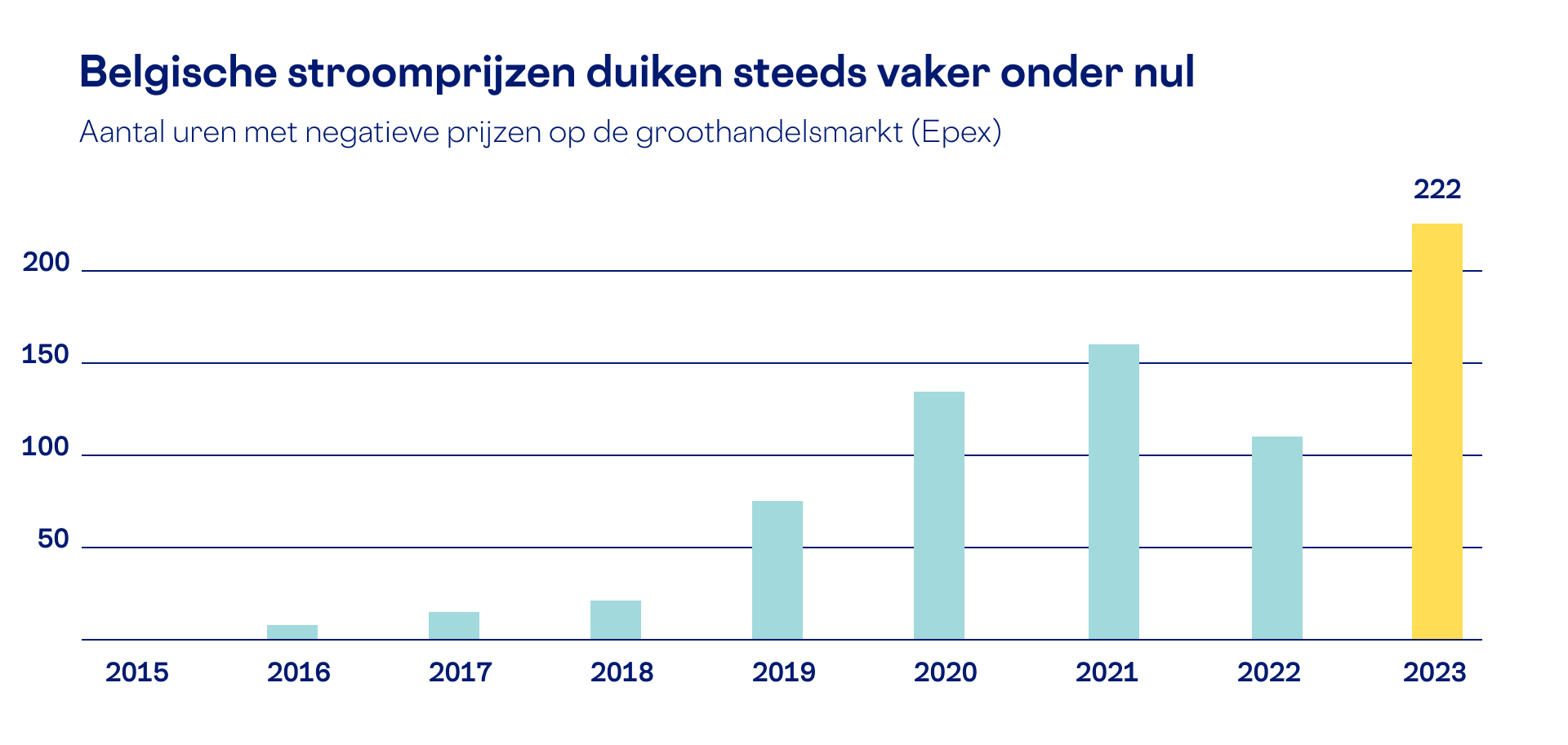 Het afgelopen jaar gebeurde het zelfs dat de energieprijs hierdoor steeds vaker onder nul kwam op bepaalde momenten van de dag. In 2023 waren er zelfs momenten waarop je elektriciteit aan een negatieve prijs van het net kon afnemen tijdens maar liefst 10 van de 12 maanden! Ter verduidelijking: op die momenten werd je betaald om je vaatwasser te laten draaien, of je thuisbatterij op te laden.