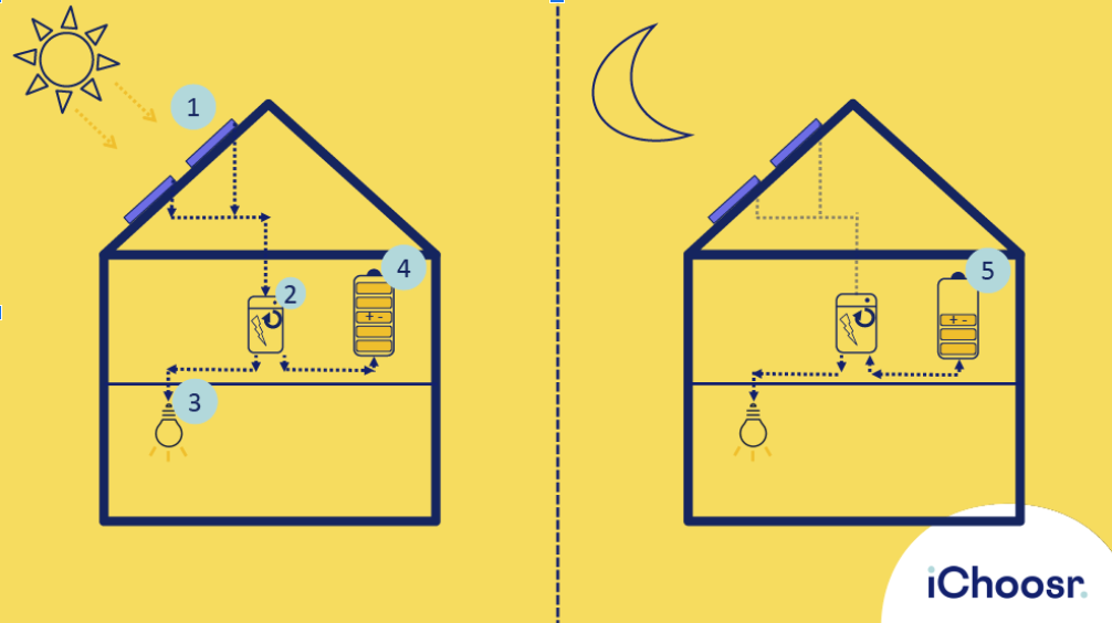 - Wekken jouw zonnepanelen op een bepaald moment niets of minder elektriciteit op, maar wil je toch elektriciteit gebruiken? Simpel. Dan haalt de omvormer de nodige stroom uit jouw thuisbatterij.